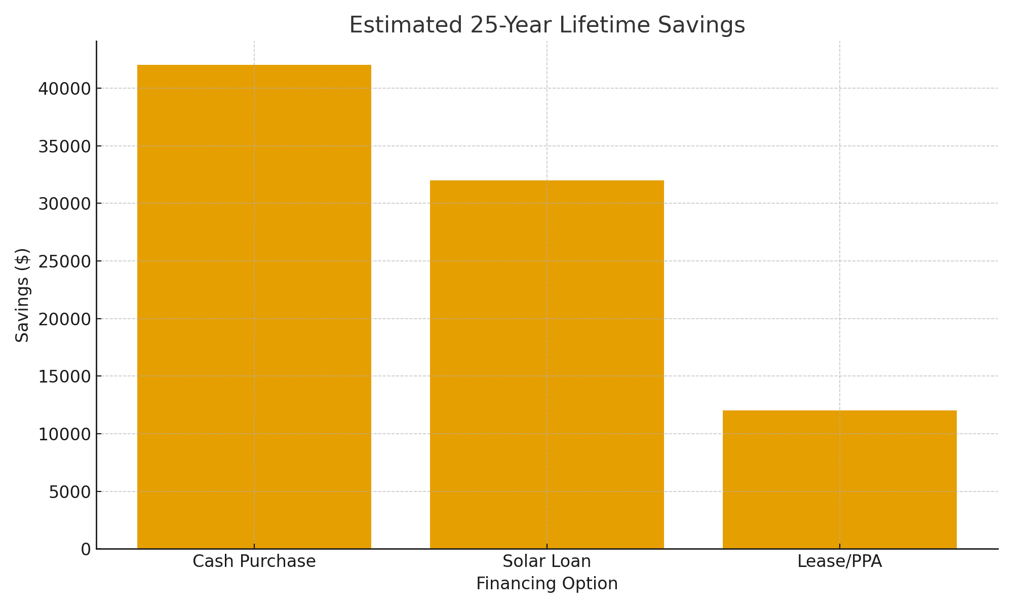 Financing TypeLifetime SavingsCash~$42,000Loan~$32,000Lease/PPA~$12,000