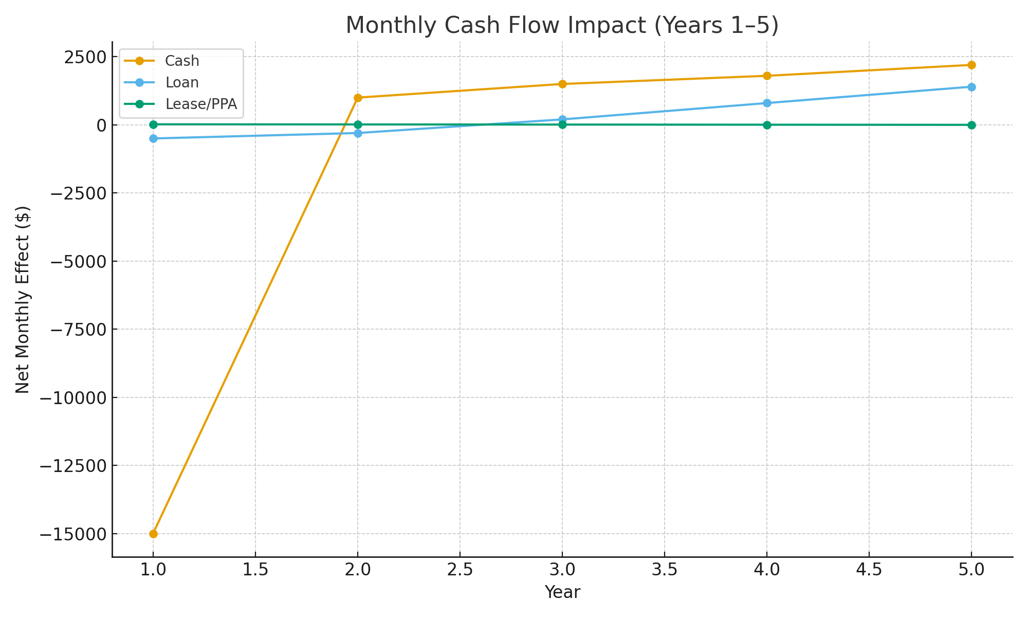 Financing TypePayback (Years)Cash~6Loan~8Lease/PPA~12